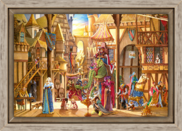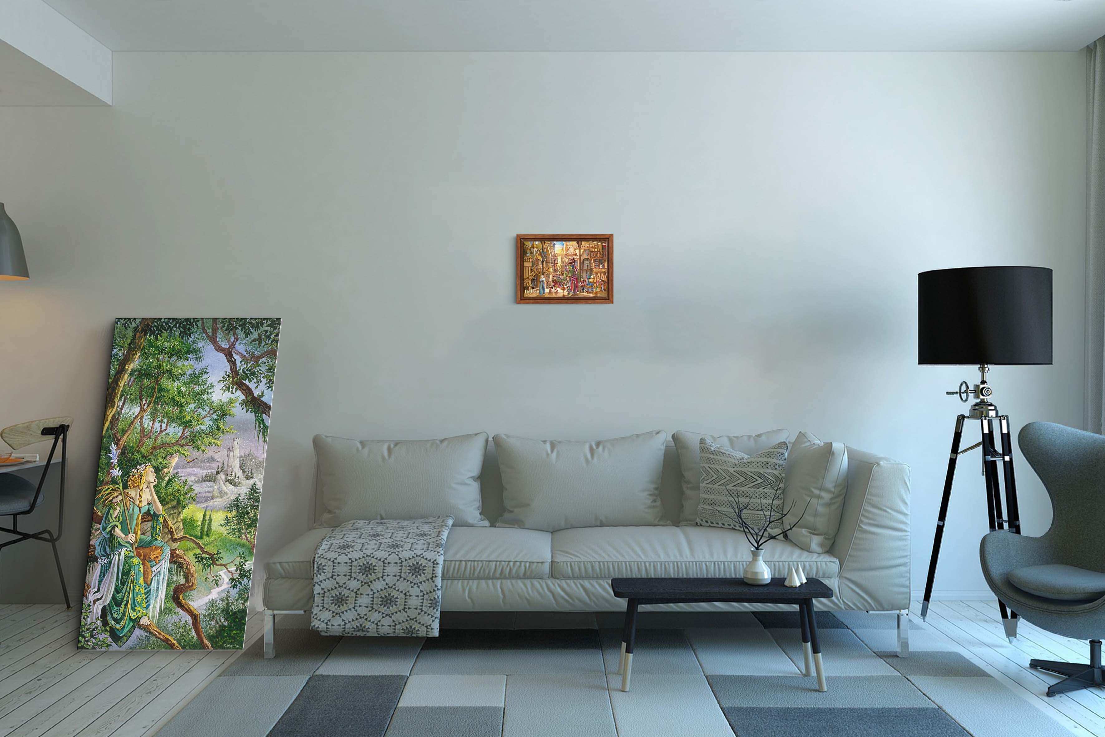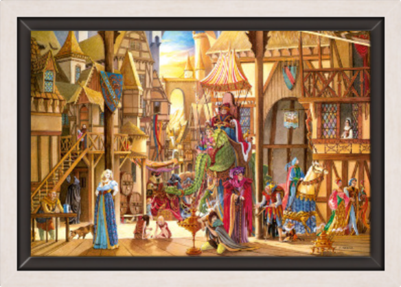 Toile L’auberge de la Sirène de Florence Magnin en format L (A2) avec cadre chêne