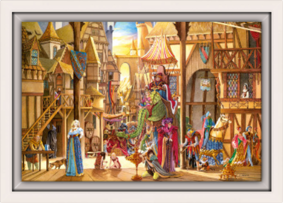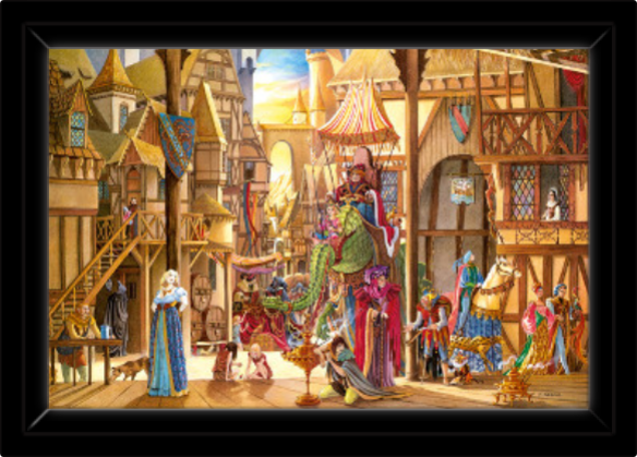 Toile L’auberge de la Sirène de Florence Magnin en format L (A2) avec cadre noix