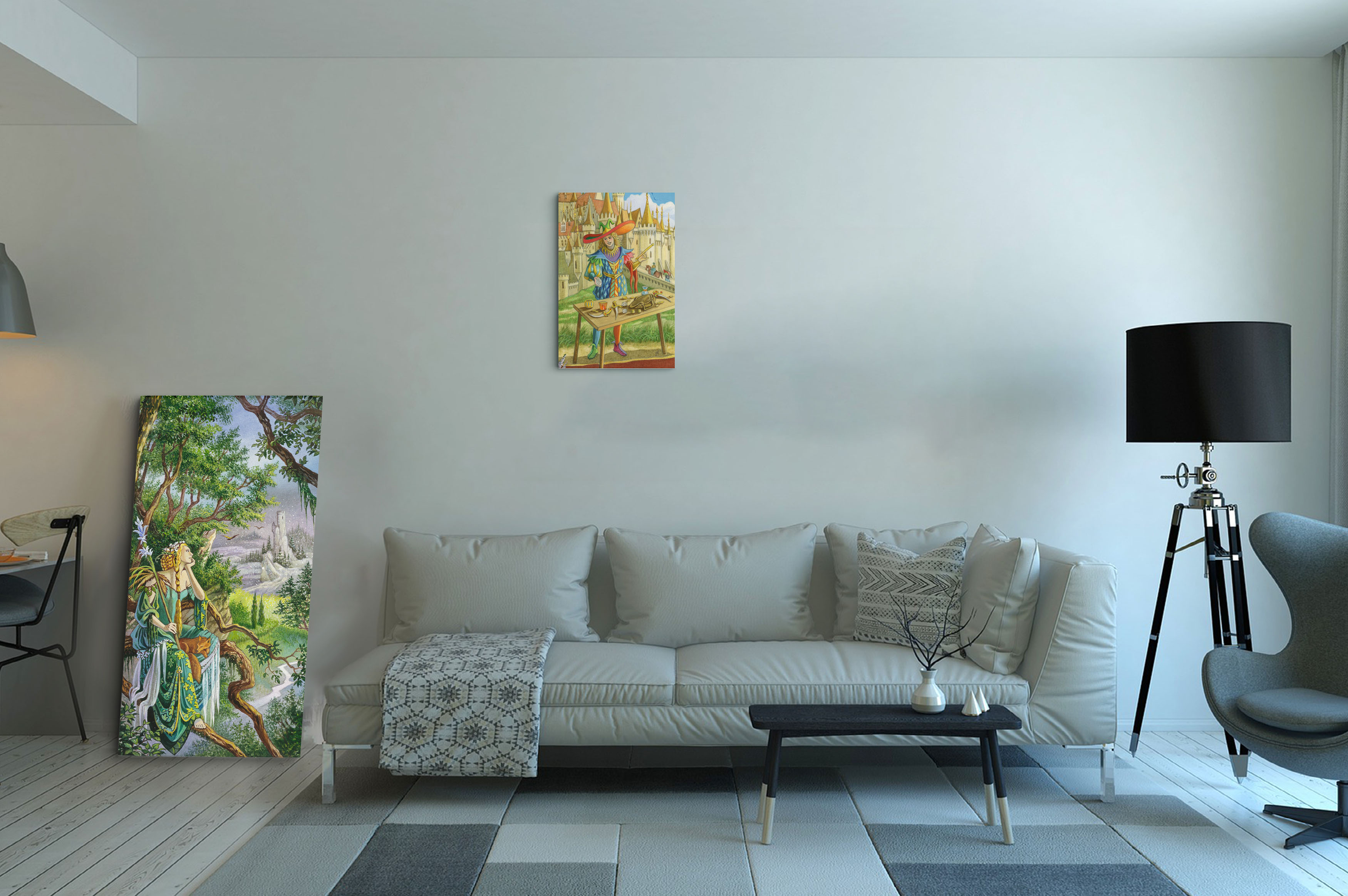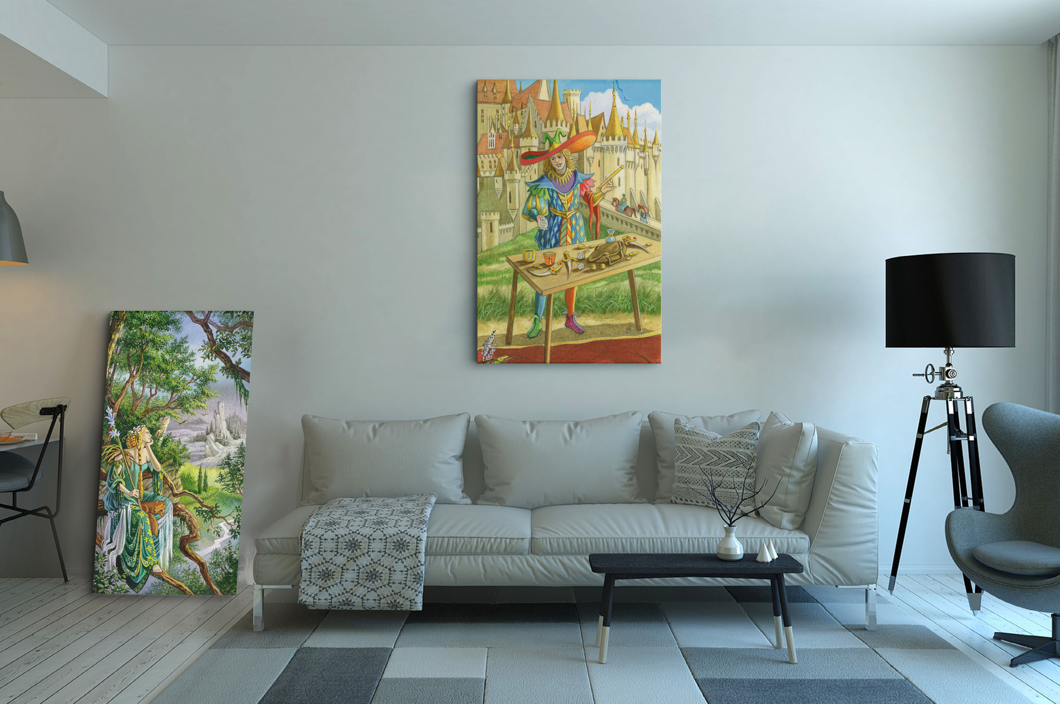 Présentation de la toile Le Bateleur format L (A2) avec cadre chêne (bois clair)