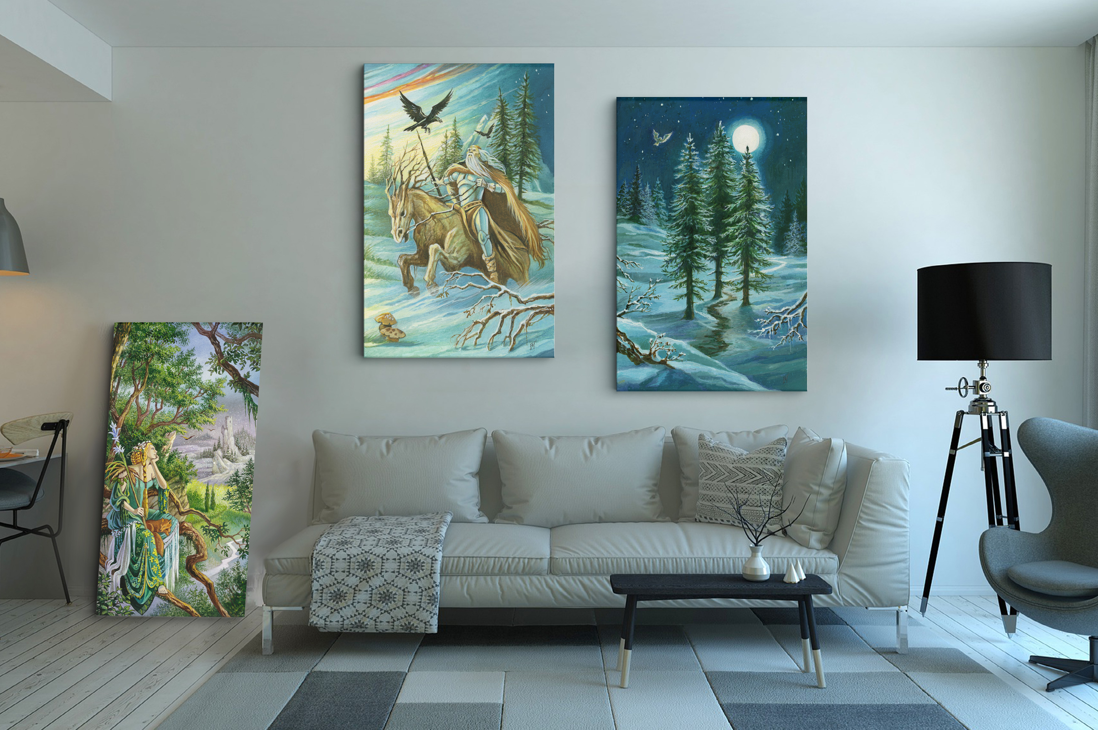 Présentation du Cavalier et du Trois de Bâtons du Labyrinthe en format XXL (A0) sans cadre