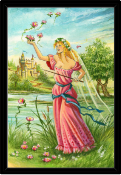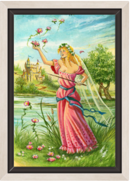 Toile La Reine de Bâtons Format S (A4) avec cadre noix