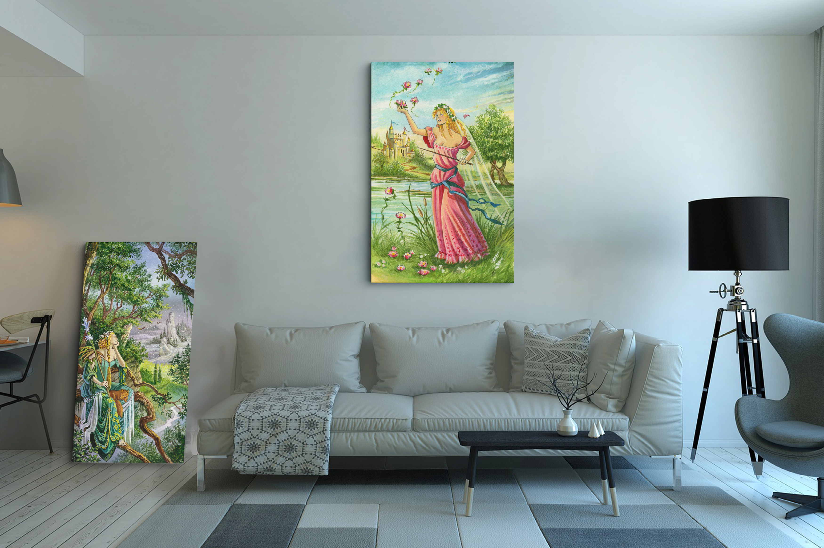 Toile Reine de Bâtons du tarot du Labyrinthe de Florence Magnin au format XXL (A0) sans cadre