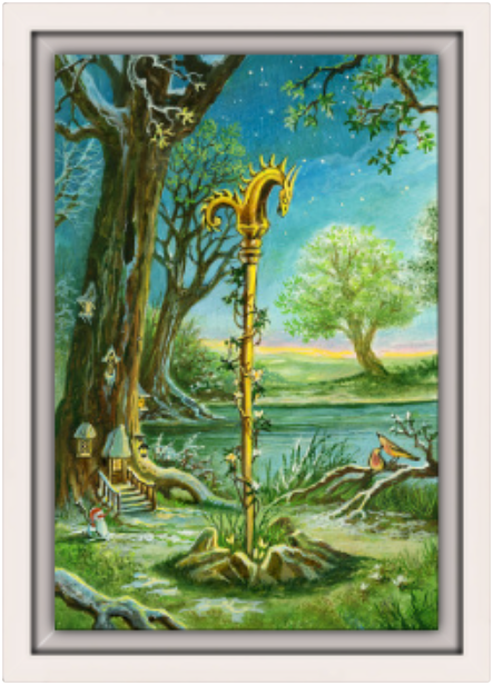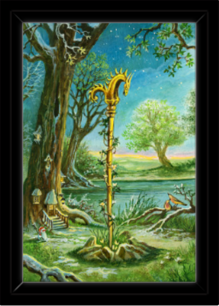 Toile As de Bâtons du tarot du Labyrinthe de Florence Magnin au format L (A2) avec cadre blanc