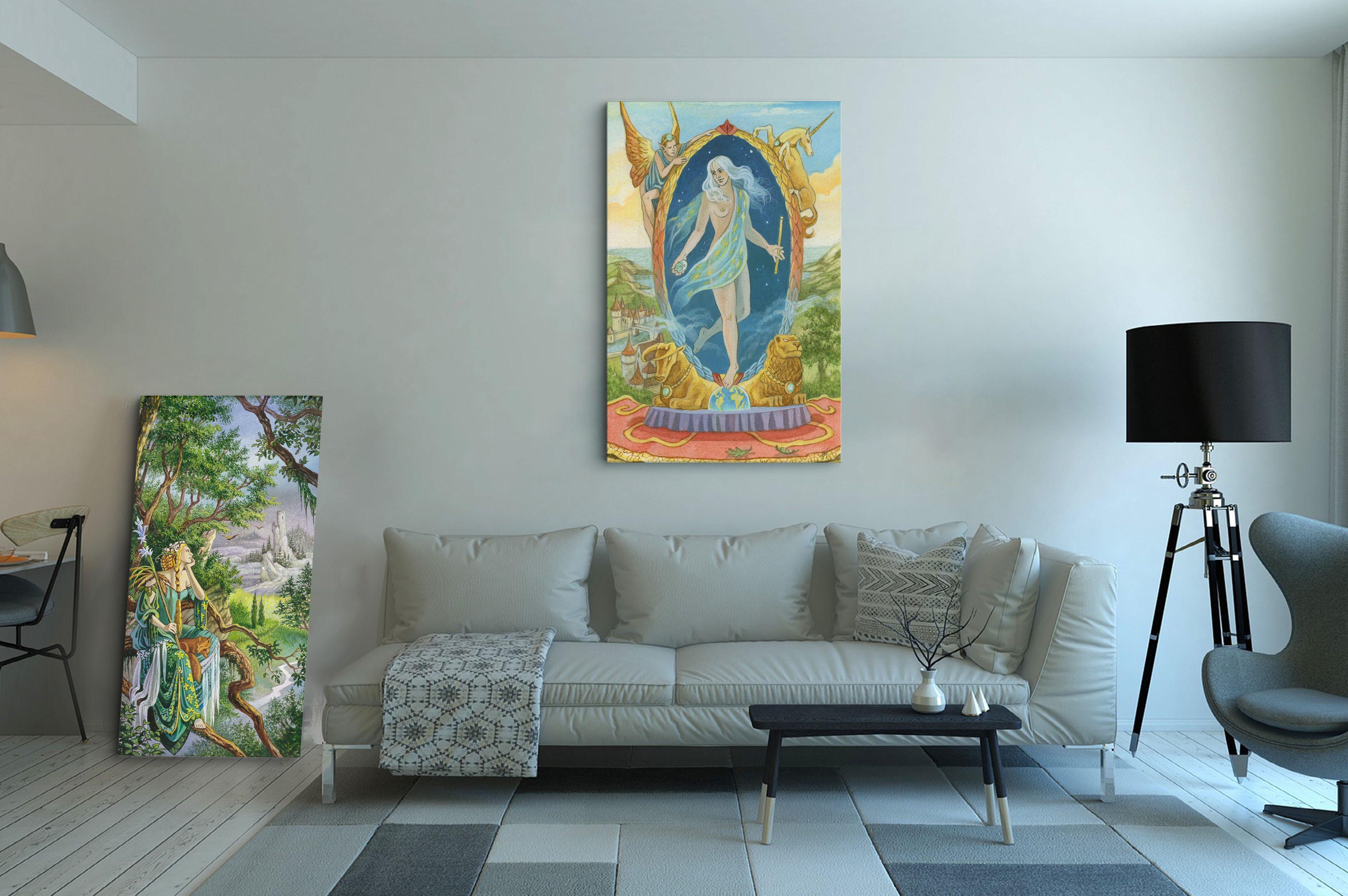 Présentation des 3 tailles disponibles pour la toile Le Pendu de Florence Magnin