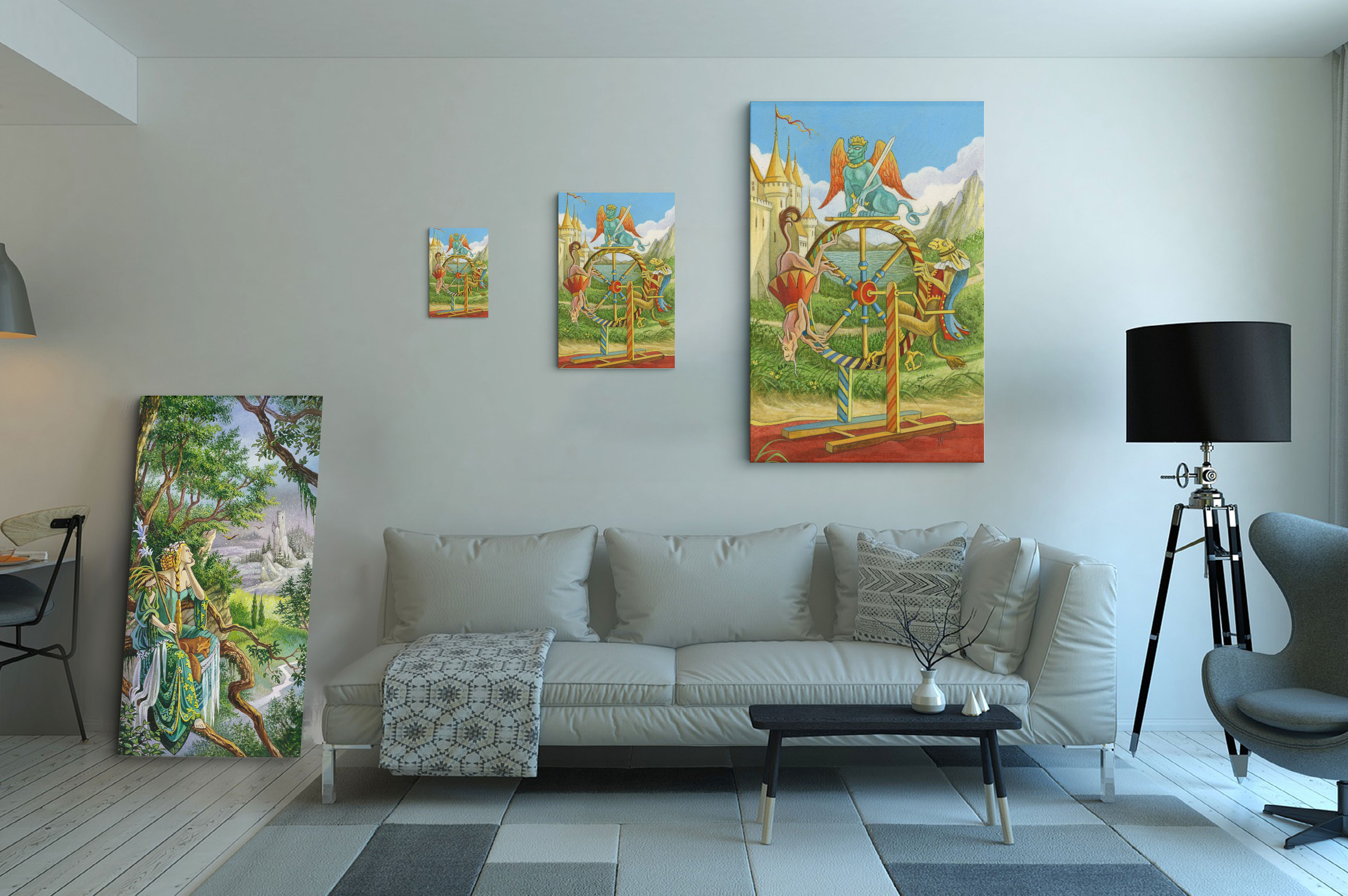 Présentation de la toile La Roue de Fortune format L (A2) avec cadre argent