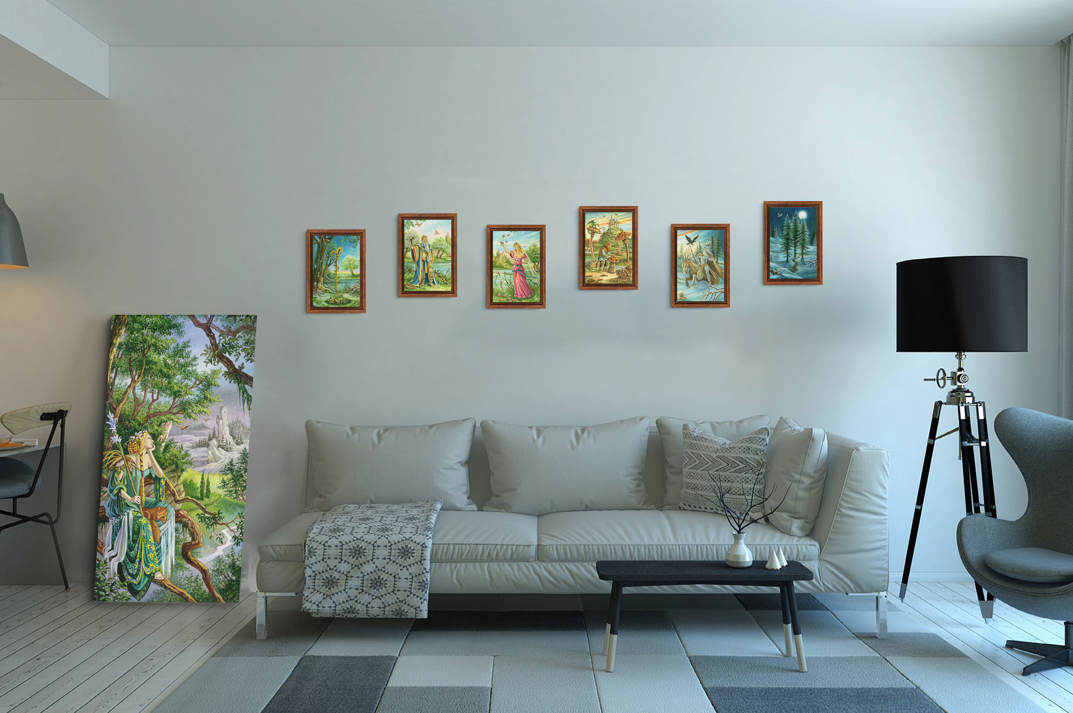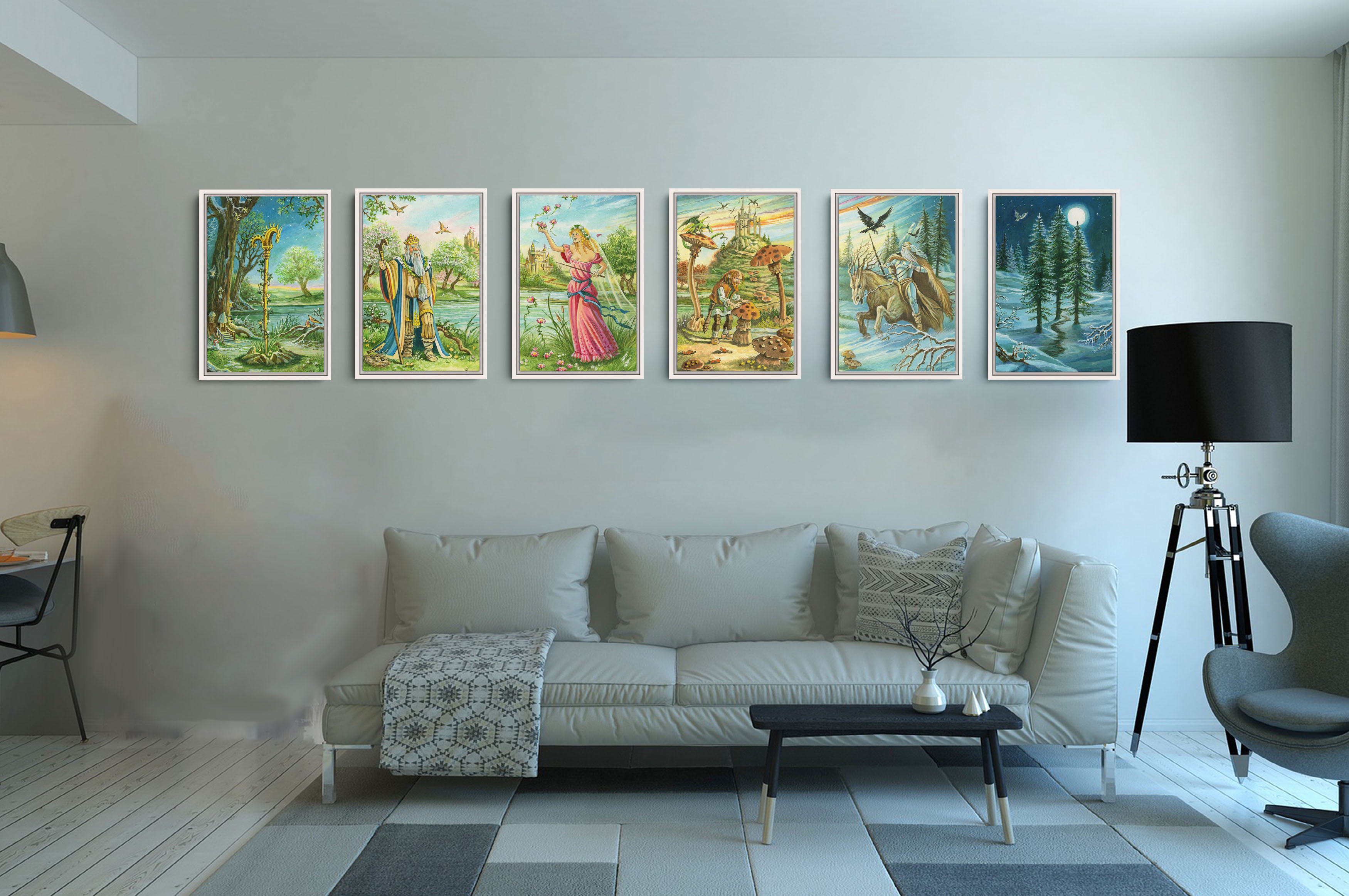 Présentation de la toile Le Bateleur format S (A4) avec cadre chêne (bois clair)