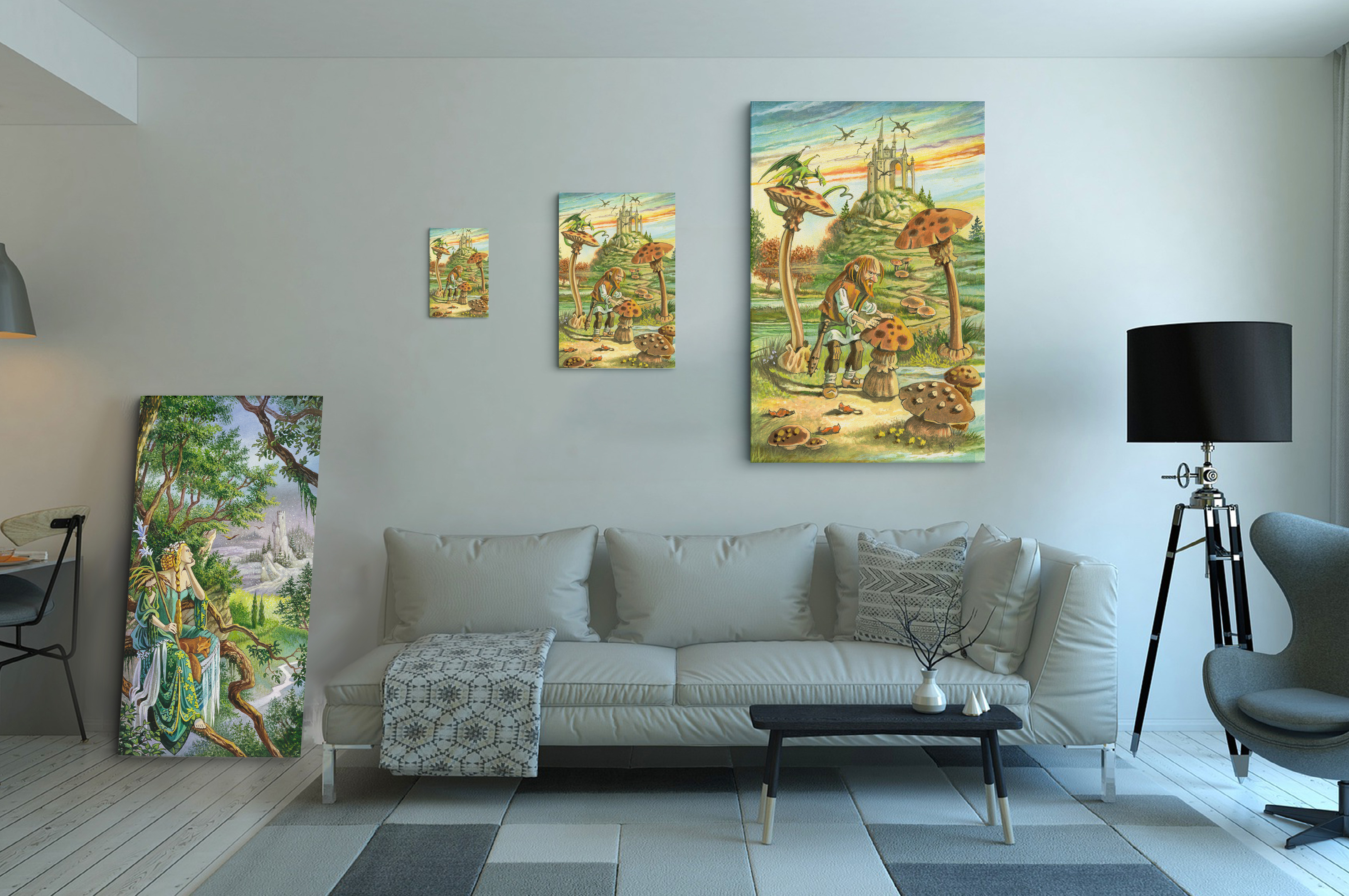 Présentation des 3 tailles disponibles pour la toile Valet de Bâtons de Florence Magnin