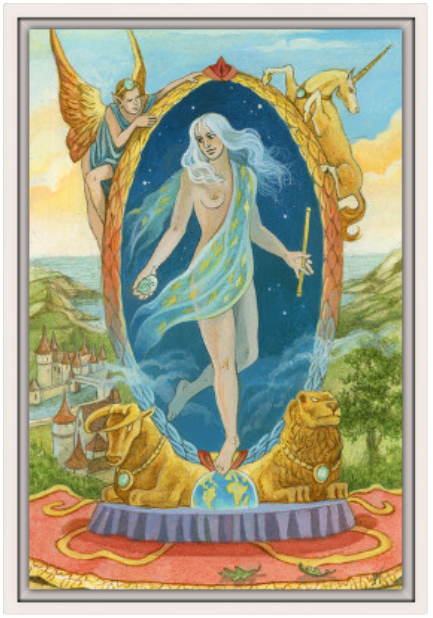Une reproduction sur toile de Florence Magnin – D’après la carte du tarot de la Marelle.