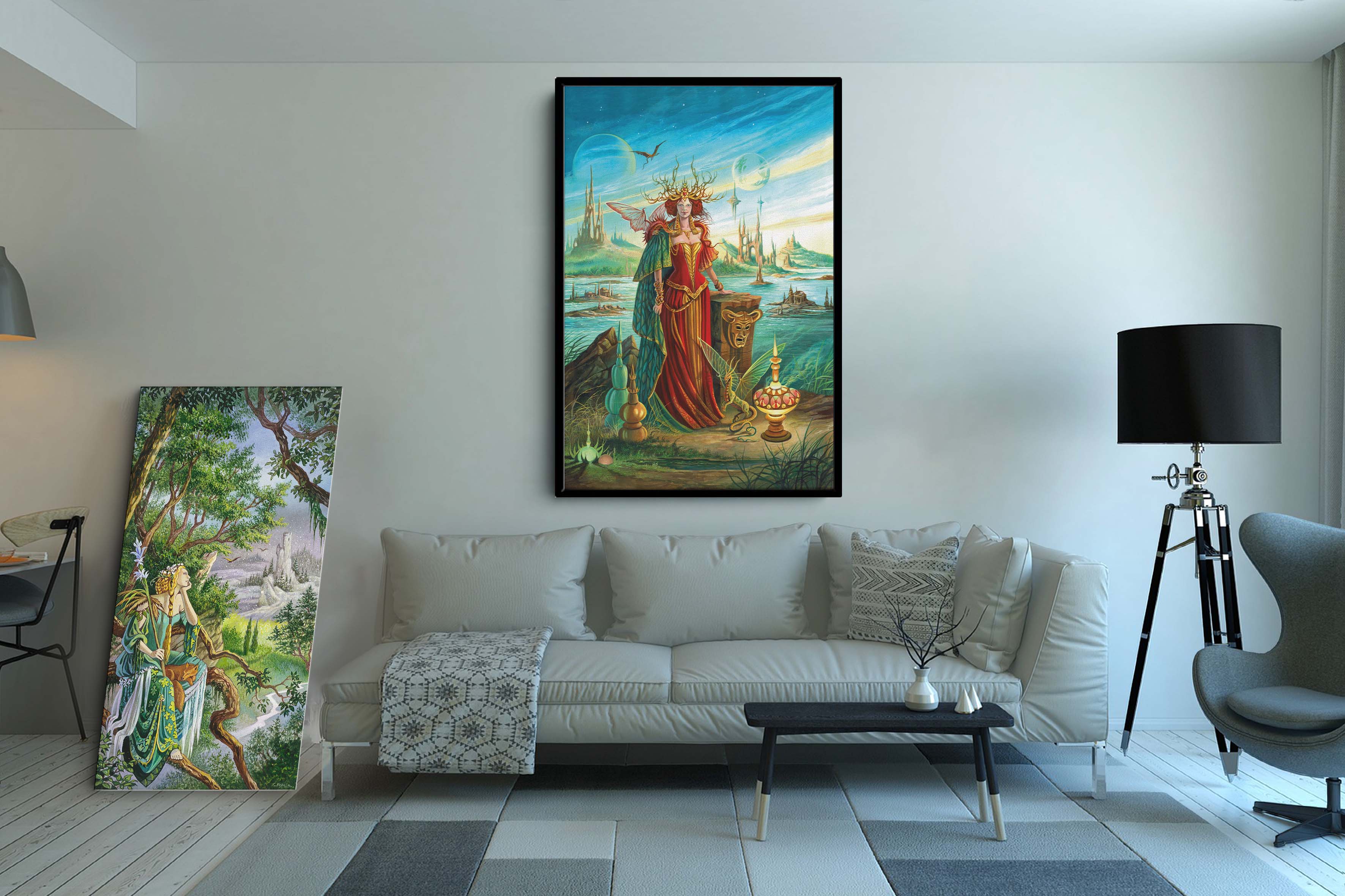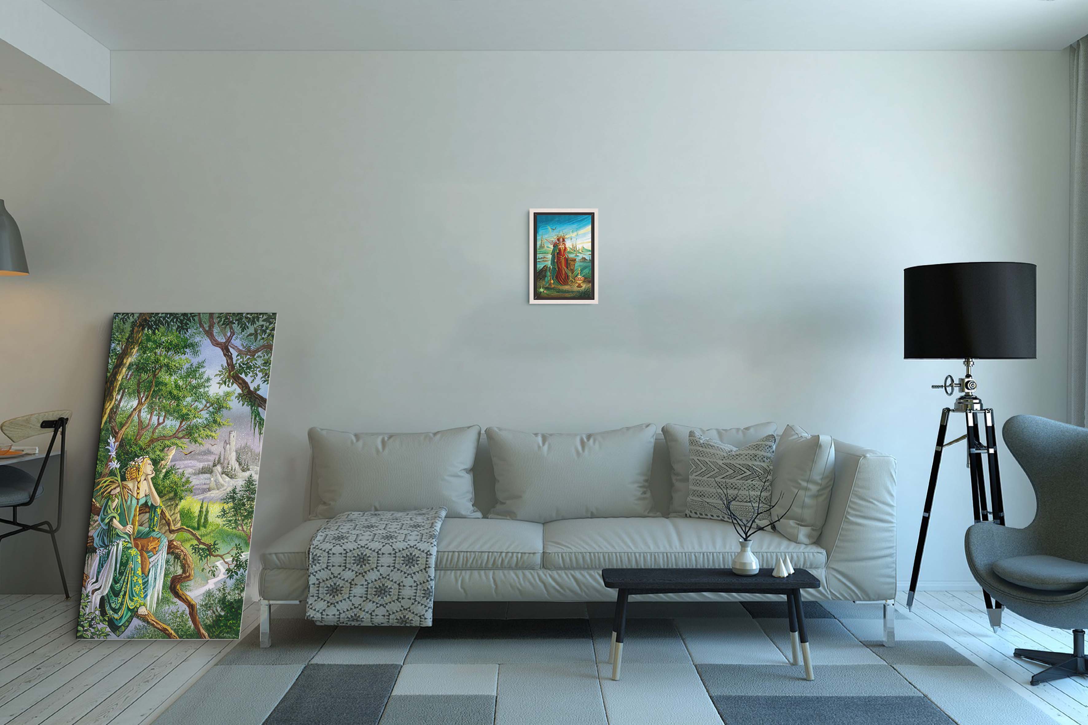 (La toile à gauche du canapé, est La dame verte en taille XXL.)
