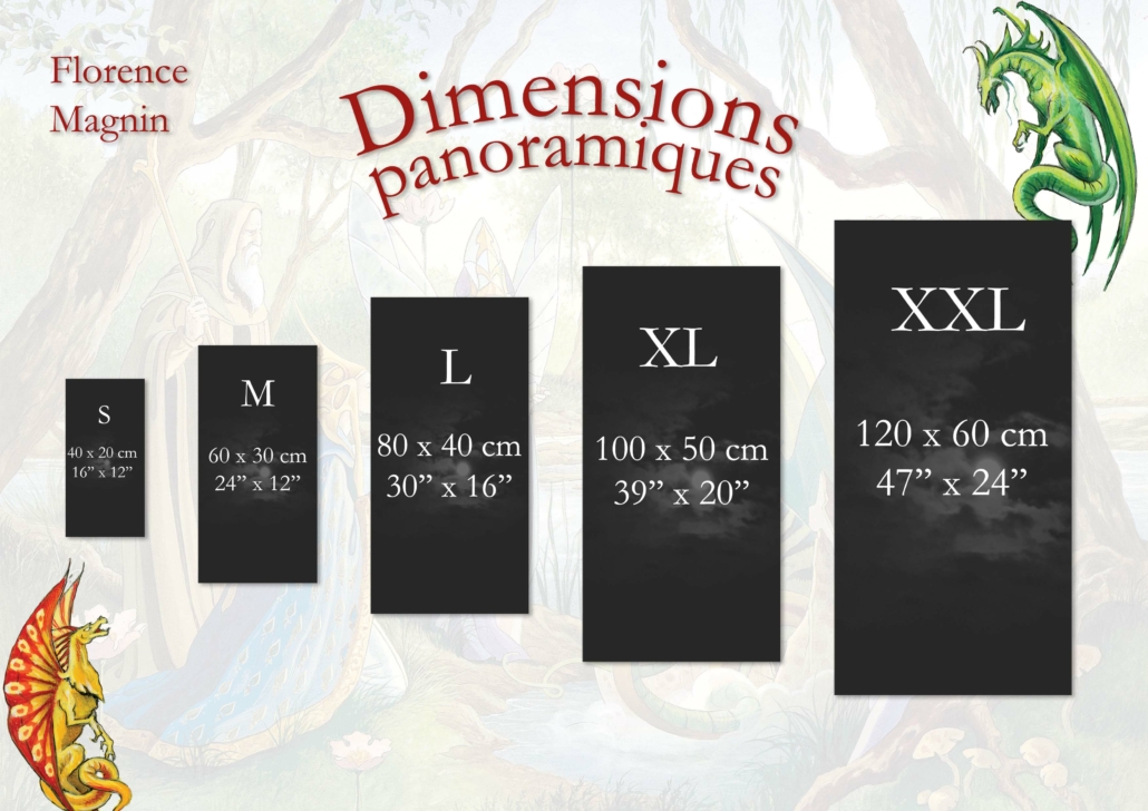 - Nouveauté : 9 toiles au format « Panneaux », dont 2 quadriptyques. Chaque toile peut être achetée individuellement ou par lot de 4 afin de constituer une fresque (d’ailleurs, vous bénéficiez d’une réduction pour l’achat du lot de 4).