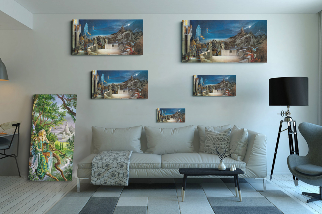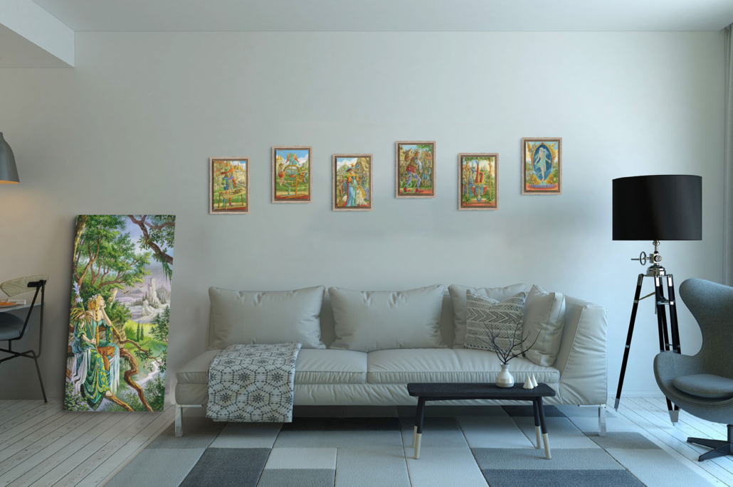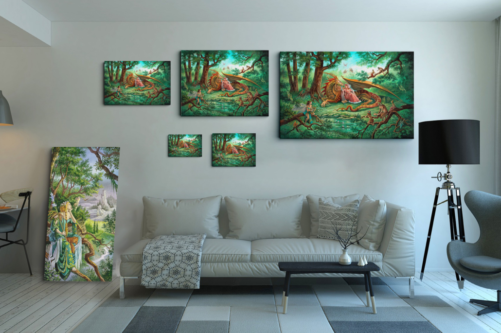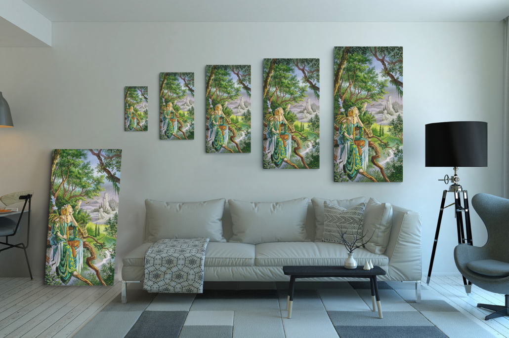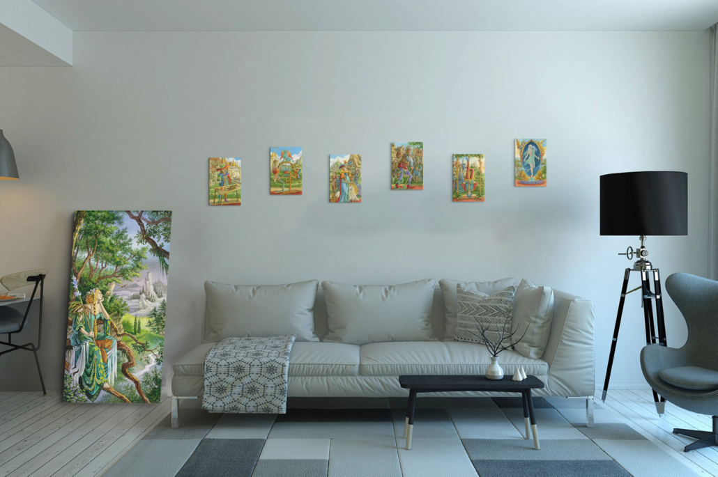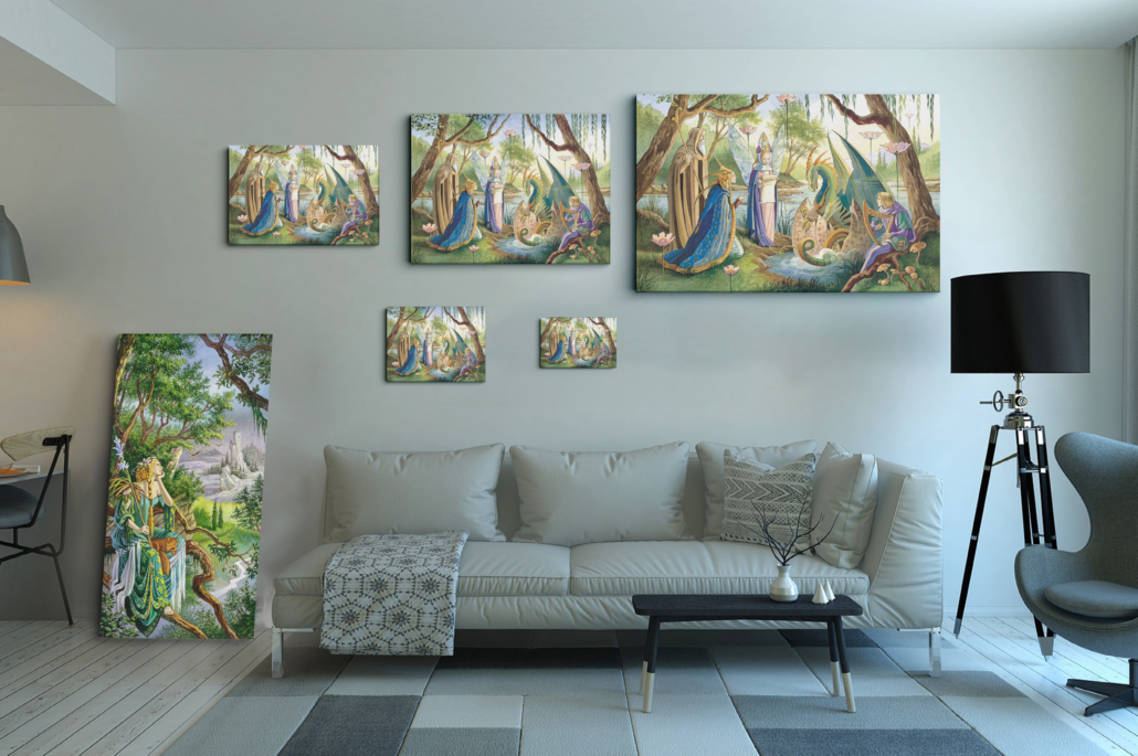 - 4 toiles au format « Classique » : 2 toiles iconiques (La Promenade et Partie Champêtre) et 2 toiles inédites qui font partie de la série « Beltane » (Fin de Fête et Beltane Nocturne).